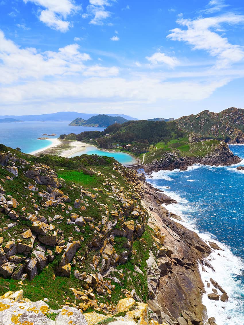 We are located in the Cíes Islands, a land of contrasts. Here, magnificent rocky cliffs blend with paradise beaches, offering panoramic views and a deep connection with nature.